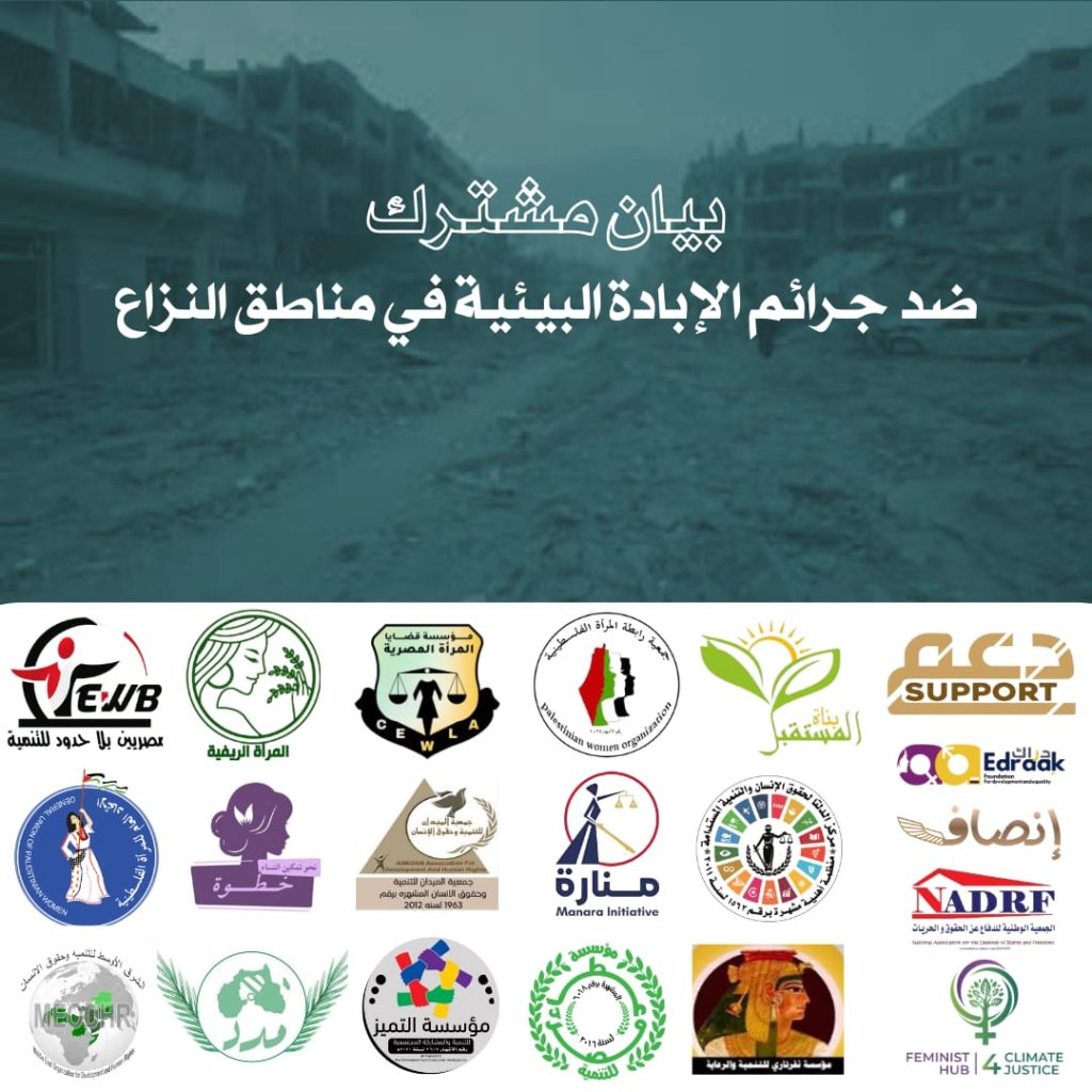 📌بيان حقوقي دولي بشأن الإبادة البيئية والاستهداف الجندري في مناطق النزاع تعرب الجهات الموقعة على هذا البيان عن بالغ القلق والاستنكار إزاء التدهور غير المسبوق في المنظومات البيئية والإنسانية في قطاع غزة في ظل استمرار العمليات العسكرية وتصاعد التوترات الإقليمية التي تنذر باتساع دائرة الصراع في منطقتنا. إن ما يشهده القطاع لا يقتصر على الأضرار العسكرية التقليدية بل يمتد إلى تدمير واسع النطاق للبنية البيئية التي تقوم عليها حياة المدنيين بما يشكل تهديداً مباشراً للحق في الحياة والصحة والبيئة السليمة. إن التدمير الممنهج لمصادر المياه والبنية التحتية للصرف الصحي وتلوث التربة والهواء وتدمير مصادر الطاقة يمثل نمطاً خطيراً من الاعتداء على البيئة يمكن توصيفه في إطار مفهوم الإبادة البيئية وهي الأفعال التي تؤدي إلى إلحاق أضرار جسيمة أو واسعة النطاق أو طويلة الأمد بالبيئة الطبيعية بما يقوض قدرة السكان على العيش بكرامة. إن هذه الممارسات تتعارض بوضوح مع المبادئ الأساسية للقانون الدولي الإنساني ومع التزامات الدول بموجب عدد من المواثيق الدولية. فقد أكد الإعلان العالمي لحقوق الإنسان لعام 1948 على أن لكل إنسان الحق في الحياة والعيش بكرامة وأمان. كما نص العهد الدولي الخاص بالحقوق الاقتصادية والاجتماعية والثقافية لعام 1966 على الحق في التمتع بأعلى مستوى ممكن من الصحة البدنية والعقلية وهو حق لا يمكن تحقيقه في ظل بيئة مدمرة أو ملوثة. كما أن قواعد القانون الدولي الإنساني وبخاصة اتفاقيات جنيف الأربع لعام 1949 والبروتوكول الإضافي الأول لعام 1977 تحظر استخدام أساليب ووسائل حرب يقصد بها أو يتوقع منها إحداث أضرار واسعة النطاق وطويلة الأمد وشديدة بالبيئة الطبيعية. وتنص المادة 55 من البروتوكول الإضافي الأول على وجوب حماية البيئة الطبيعية من الأضرار الواسعة التي قد تعرض صحة السكان أو بقاءهم للخطر. وفي السياق ذاته حظرت اتفاقية حظر الاستخدام العسكري أو العدائي لتقنيات التغيير في البيئة لعام 1976 استخدام البيئة كسلاح في النزاعات المسلحة إذا ترتب على ذلك آثار واسعة أو طويلة الأمد أو شديدة. كما أكد إعلان ستوكهولم بشأن البيئة البشرية لعام 1972 وإعلان ريو بشأن البيئة والتنمية لعام 1992 أن الإنسان له حق أساسي في بيئة تتيح له حياة كريمة وأن على الدول واجب حماية الموارد البيئية للأجيال الحالية والقادمة. وفيما يتعلق بالبعد الجندري للنزاعات فإن اتفاقية القضاء على جميع أشكال التمييز ضد المرأة لعام 1979 تلزم الدول باتخاذ التدابير اللازمة لحماية النساء من الآثار غير المتكافئة للأزمات والنزاعات. كما شددت قرارات مجلس الأمن بشأن المرأة والسلام والأمن وعلى رأسها القرار 1325 لعام 2000 على ضرورة حماية النساء في النزاعات المسلحة ومعالجة الآثار الخاصة التي يتعرضن لها. كما تؤكد اتفاقية حقوق الطفل لعام 1989 حق الأطفال في التمتع بأعلى مستوى ممكن من الصحة والعيش في بيئة سليمة وهو حق يتعرض لخطر بالغ عندما تتحول البيئة إلى ساحة للتدمير أو التلوث. وفي ضوء هذه الأطر القانونية الدولية فإن ما يحدث من تدمير واسع للبنية البيئية والخدمات الأساسية في مناطق النزاع يثير مخاوف جدية بشأن انتهاك هذه الالتزامات الدولية ويستدعي تحقيقاً دولياً مستقلاً لتقييم حجم الأضرار البيئية والصحية والإنسانية الناتجة عن العمليات العسكرية. كما يبرز بوضوح البعد الجندري للأزمة حيث تتحمل النساء والفتيات أعباء مضاعفة نتيجة انهيار البنية التحتية للمياه والصرف الصحي والخدمات الصحية. إن هذا الواقع يفرض عليهن مخاطر صحية واجتماعية جسيمة ويعرضهن لتهديدات إضافية تتعلق بالعنف القائم على النوع الاجتماعي في ظل النزوح الجماعي وتدهور ظروف الإيواء. كما أن احتمالات اتساع النزاع إقليمياً قد تقود إلى آثار بيئية عابرة للحدود تشمل تلوث المجالات البحرية والجوية في المنطقة وهو ما قد يهدد ملايين المدنيين ويقوض التوازن البيئي الهش في الشرق الأوسط. _ وانطلاقاً